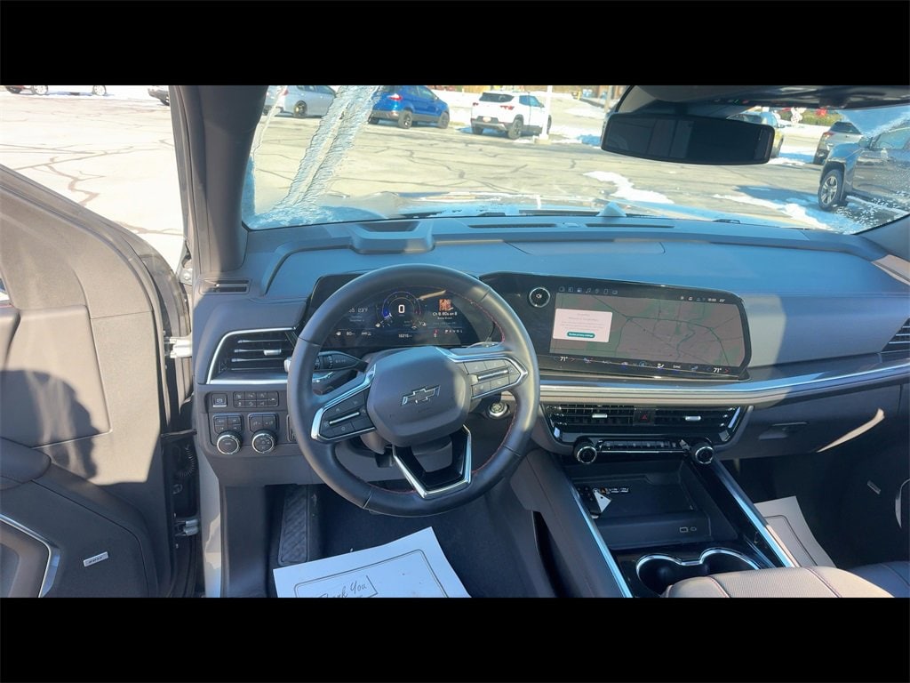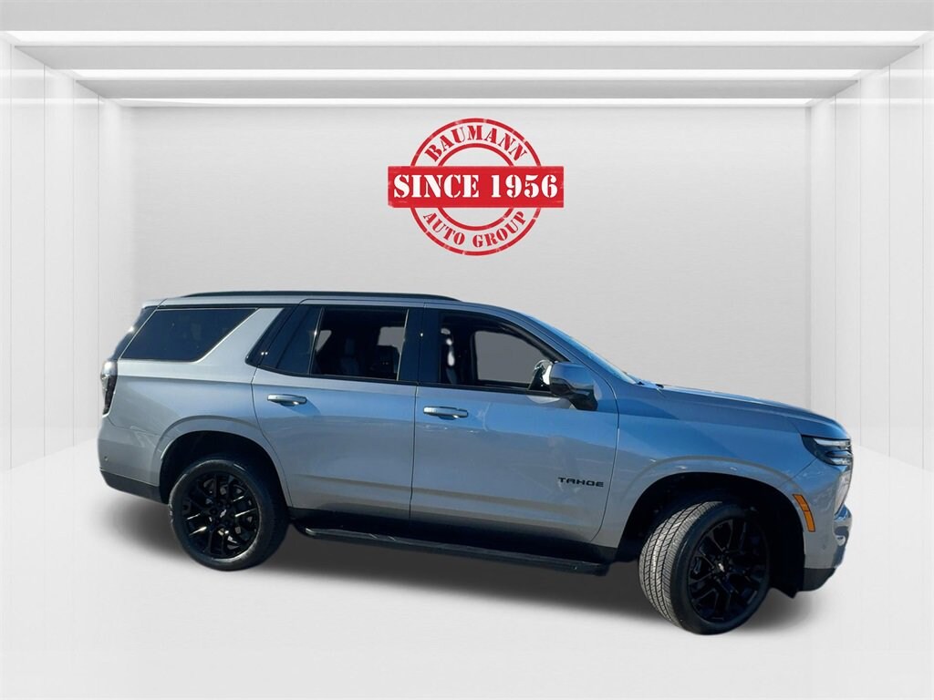 Clean CARFAX.Sterling Gray Metallic 2025 Chevrolet Tahoe RST 4WD 4D Sport Utility EcoTec3 5.3L V8 10-Speed Automatic with Overdrive 4WDONE OWNER CLEAN CARFAX!!Car shopping is sometimes inconvenient and stressful, and we want to take the hassle out of this all-too-common experience. If youâre interested in more convenience, less frustration and a process that works efficiently to meet your needs as a customer. Al BAUMANN AUTO GROUP. The Best Price Up Front Cash Offers For Any Trade-In Multiple Financing Quotes In Minutes A Team Of Dedicated Salespeople.4WD, Jet Black/Victory Red w/Perforated Leather Seat Trim, 2-Speed Active Electronic AutoTrac Transfer Case, 3-Spoke Wrapped Steering Wheel, 3rd Row 60/40 Power-Folding Split-Bench Seat, 3rd Row Manual 60/40 Split-Folding Bench Seats, Advanced Trailering Package, Auto-Dimming Inside Rear-View Mirror, Color-Keyed Carpeting Floor Covering, Comfort Package, Dual Exhaust System, Front LED Fog Lamps, Heated 2nd Row Outboard Seats, Heated Steering Wheel, Hill Descent Control, Integrated Trailer Brake Controller, LED Tail Lamps, Max Trailering Package, Memory Settings, Navigation system: Google built-in compatibility (select service plan required, terms and limitations apply), Outside Heated Power-Adjustable Mirrors, Preferred Equipment Group 1SP, Rear Power Liftgate, Remote Start, RST Exterior Features, Smart Trailer Integration Indicator, Universal Home Remote, USB Ports, Wireless Phone Charging, 2-Way Power Driver Lumbar Seat Adjuster, 2-Way Power Front Passenger Lumbar Seat Adjuster, 3.23 Rear Axle Ratio, 3rd row seats: split-bench, 4-Wheel Disc Brakes, 6 Speakers, 6-Speaker Audio System Feature, 8-Way Power Driver Seat Adjuster, 8-Way Power Front Passenger Seat Adjuster, ABS brakes, Air Conditioning, Alloy wheels, AM/FM radio: SiriusXM with 360L, Apple CarPlay/Android Auto, Auto High-beam Headlights, Auto-dimming Rear-View mirror, Automatic temperature control, Brake assist, Bumpers: body-color, Compass, Delay-off headlights, Driver door bin, Driver vanity mirror, Dual front impact airbags, Dual front side impact airbags, Dual-Pane Power Panoramic Sunroof, Electronic Stability Control, Emergency communication system: OnStar and Chevrolet connected services capable, Exterior Parking Camera Rear, Extra Capacity Cooling System, Four wheel independent suspension, Front anti-roll bar, Front Bucket Seats, Front Center Armrest, Front dual zone A/C, Front fog lights, Front reading lights, Fully automatic headlights, Garage door transmitter, Heated door mirrors, Heated front seats, Illuminated entry, Low tire pressure warning, Memory seat, Occupant sensing airbag, Outside temperature display, Overhead airbag, Overhead console, Panic alarm, Passenger door bin, Passenger vanity mirror, Perforated Leather Seat Trim, Power door mirrors, Power driver seat, Power Liftgate, Power passenger seat, Power Release 2nd Row Bucket Seats, Power steering, Power windows, Premium audio system: Chevrolet Infotainment 3 Premium, Premium Smooth Ride Suspension, Radio data system, Radio: 17.7 Diagonal Advanced Color LCD Display, Rain sensing wipers, Rear air conditioning, Rear anti-roll bar, Rear reading lights, Rear seat center armrest, Rear window defroster, Rear window wiper, Remote keyless entry, Security system, Speed control, Speed-sensing steering, Split folding rear seat, Spoiler, Steering wheel mounted audio controls, Tachometer, Telescoping steering wheel, Tilt steering wheel, Traction control, Trip computer, Variably intermittent wipers, Voltmeter, Wheels: 22 x 9 Bright Machined, 4WD, Jet Black/Victory Red w/Perforated Leather Seat Trim, 2-Speed Active Electronic AutoTrac Transfer Case, 3-Spoke Wrapped Steering Wheel, 3rd Row 60/40 Power-Folding Split-Bench Seat, 3rd Row Manual 60/40 Split-Folding Bench Seats, Advanced Trailering Package, Auto-Dimming Inside Rear-View Mirror, Color-Keyed Carpeting Floor Covering, Comfort Package, Dual Exhaust System, Front LED Fog