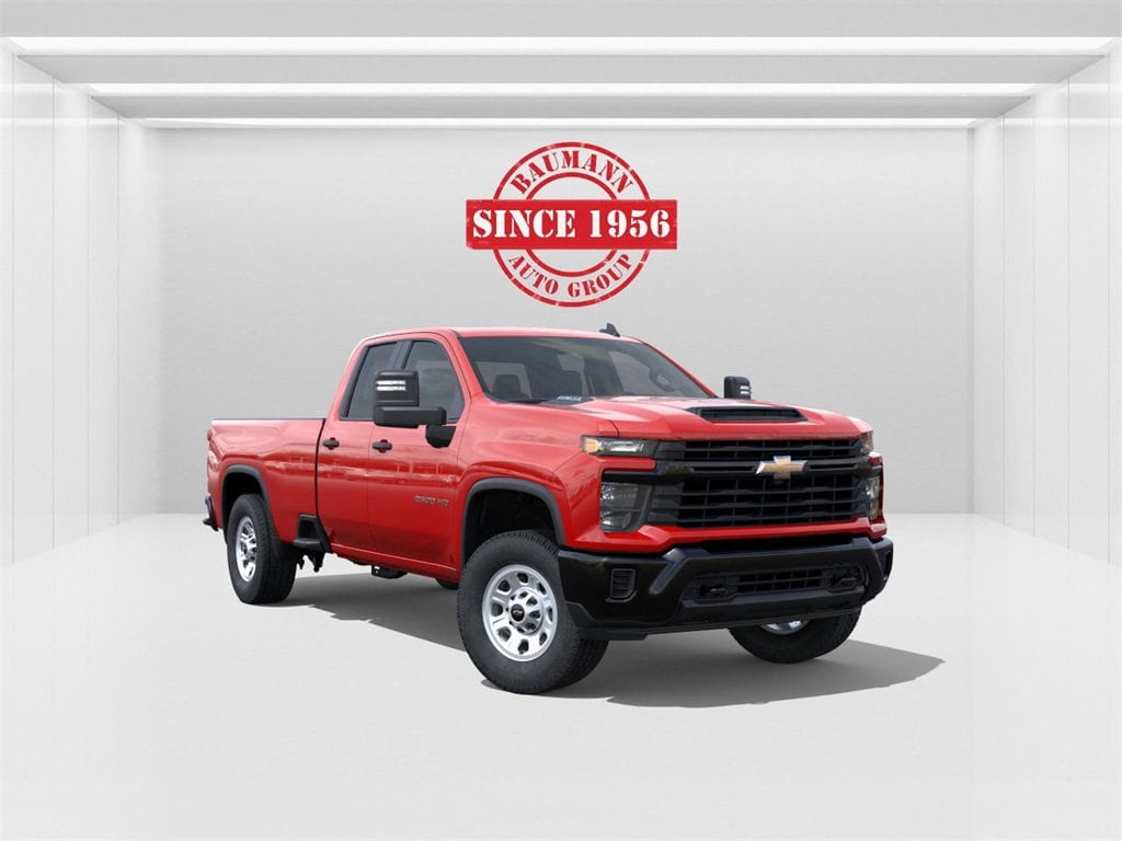 Recent Arrival!Red Hot 2026 Chevrolet Silverado 2500HD Work Truck 6.6L V8 Double Cab RWD 10-Speed Automatic10-Speed Automatic, Jet Black Vinyl, 170 Amp Alternator, 18 Painted Steel Wheels, 3.5 Diagonal Monochromatic Display DIC, 3.73 Rear Axle Ratio, 4-Wheel Disc Brakes, 6 Speakers, 6-Speaker Audio System, 720 Cold-Cranking Amps Heavy-Duty Battery, ABS brakes, Air Conditioning, AM/FM radio, Apple CarPlay/Android Auto, Auto High-beam Headlights, Black Front Bumper, Black Mirror Caps, Black Rear Bumper, Bluetooth® For Phone, Brake assist, Chevrolet Connected Access Capable, Compass, Deep-Tinted Glass, Delay-off headlights, Driver door bin, Dual front impact airbags, Dual front side impact airbags, Durabed Pickup Bed, Electric Rear-Window Defogger, Electronic Cruise Control with Set and Resume Speed, Electronic Stability Control, Emergency communication system: OnStar, EZ Lift Power Lock and Release Tailgate, Front 40/20/40 Split-Bench Seats with Lockable Storage, Front anti-roll bar, Front Center Armrest w/Storage, Front reading lights, Front wheel independent suspension, Fully automatic headlights, HD Rear Vision Camera, Heated Vertical Trailering Mirrors, High-Visibility Vertical Trailering Mirrors, Illuminated entry, Locking Tailgate, Low tire pressure warning, Manual Tailgate Function with No EZ Lift, Manual Tilt-Wheel Steering Column, Occupant sensing airbag, OnStar Services Capable, Outside temperature display, Overhead airbag, Overhead console, Panic alarm, Passenger door bin, Passenger vanity mirror, Power Door Locks, Power Front Windows with Driver Express Up/Down, Power Rear Windows with Express Down, Power steering, Power windows, Preferred Equipment Group 1WT, Premium audio system: Chevrolet Infotainment 3, Push Button Start, Radio: Chevrolet Infotainment 3 System, Rear 60/40 Folding Bench Seat (folds Up), Rear reading lights, Rear step bumper, Remote Keyless Entry, Remote keyless entry, Rubberized-Vinyl Floor Covering, Solar Absorbing Tinted Glass, Speed control, Split folding rear seat, Standard Tailgate, Suspension Package, Tachometer, Tilt steering wheel, Traction control, Trip computer, Variably intermittent wipers, Vinyl Seat Trim, Voltmeter, Wheels: 17 Silver Painted Steel, Wi-Fi Hotspot Capable, Wireless Phone Projection, WT Convenience Package, 10-Speed Automatic, Jet Black Vinyl.