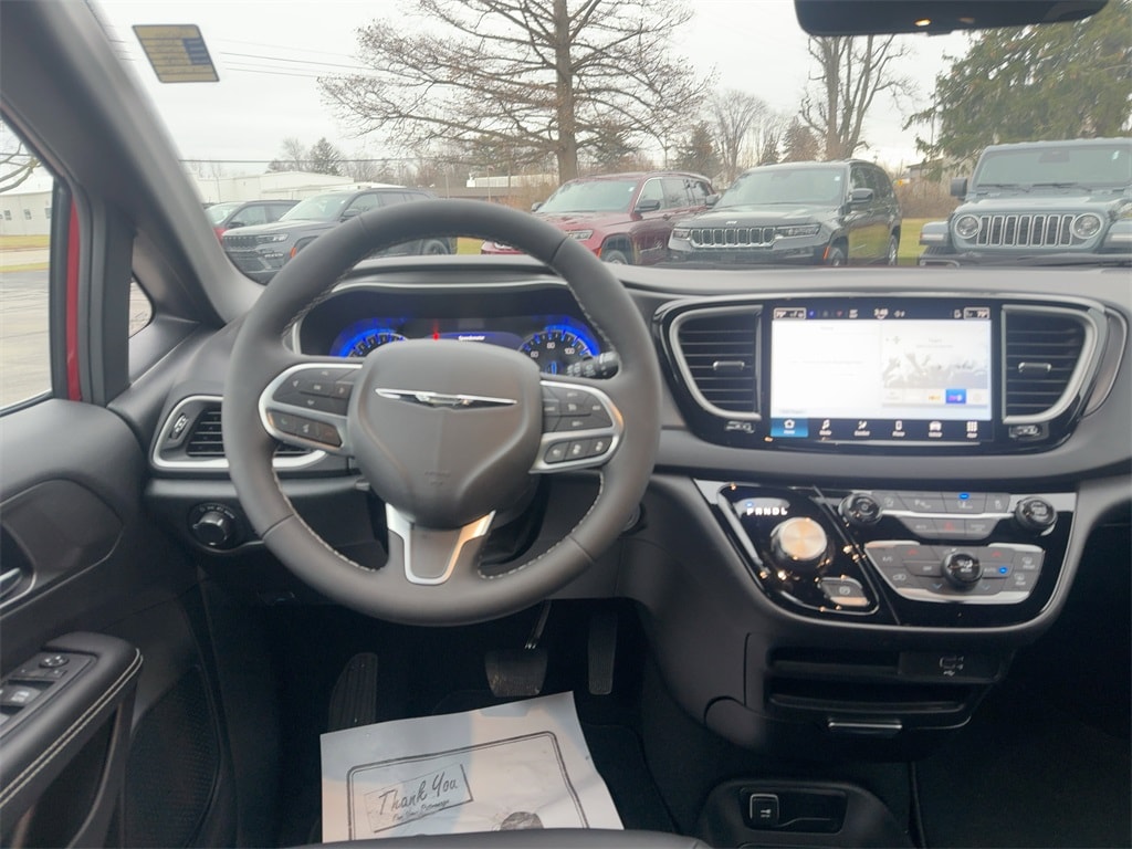 17" x 7" Aluminum Wheels, 3.25 Axle Ratio, 3rd row seats: split-bench, 4-Wheel Disc Brakes, 6 Speakers, ABS brakes, Air Conditioning, Alloy wheels, AM/FM radio: SiriusXM, Apple CarPlay/Android Auto, Automatic temperature control, Black Seats, Brake assist, Bumpers: body-color, Caprice Leatherette Bucket Seats, Compass, Delay-off headlights, Driver door bin, Driver vanity mirror, Driver's Seat Mounted Armrest, Dual front impact airbags, Dual front side impact airbags, Electronic Stability Control, Emergency communication system: Chrysler Connect, Four wheel independent suspension, Front anti-roll bar, Front Bucket Seats, Front dual zone A/C, Front reading lights, Fully automatic headlights, Heated door mirrors, Heated front seats, Heated steering wheel, Illuminated entry, Knee airbag, Low tire pressure warning, MyFlexCare Service Plan, Occupant sensing airbag, Outside temperature display, Overhead airbag, Overhead console, Panic alarm, ParkView Rear Back-Up Camera, Passenger door bin, Passenger seat mounted armrest, Passenger vanity mirror, Power door mirrors, Power driver seat, Power Liftgate, Power steering, Power windows, Quick Order Package 27E, Radio data system, Radio: Uconnect 5 with 10.1" Display, Rain sensing wipers, Rear air conditioning, Rear window defroster, Rear window wiper, Reclining 3rd row seat, Remote keyless entry, Security system, Speed control, Split folding rear seat, Spoiler, Steering wheel mounted audio controls, Tachometer, Telescoping steering wheel, Tilt steering wheel, Touring Suspension, Traction control, Trip computer, Turn signal indicator mirrors, Variably intermittent wipers, Voltmeter.