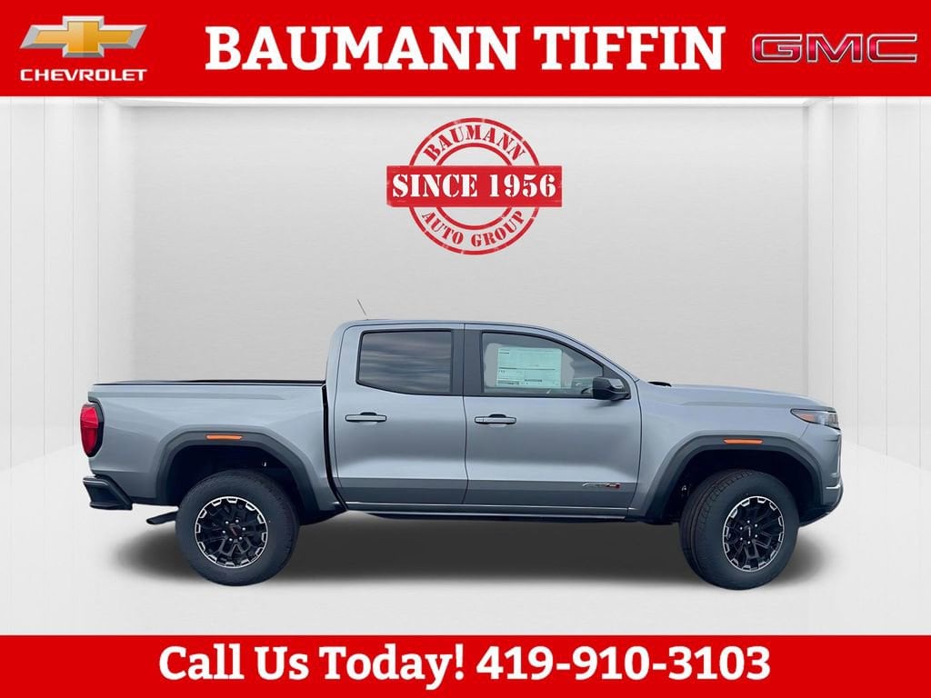 17/22 City/Highway MPGSterling Metallic 2026 GMC Canyon AT4 2.7L I4 Turbocharged DOHC 16V LEV3-SULEV30 310hp 4D Crew Cab 4WD 8-Speed Automatic4WD, 120-Volt Bed Mounted Power Outlet, 1st and 2nd Rows All-Weather Floor Liner, 2 1st Row USB Charge/Data Ports, 2 Rear USB Ports in Center Console (Charge-Only), 3.42 Rear Axle Ratio, 4-Way Manual Front Passenger Seat Adjuster, 4-Wheel Disc Brakes, 6 Speakers, 6-Speaker Audio System Feature, 8-Way Power Driver Seat Adjuster, ABS brakes, Air Conditioning, Alloy wheels, AM/FM radio: SiriusXM with 360L, Apple CarPlay/Android Auto, Auto High-beam Headlights, Auto-dimming Rear-View mirror, Automatic Emergency Braking, Automatic Stop/Start, Automatic temperature control, Black Assist Steps, Blind Zone Steering Assist with Trailering, Brake assist, Bumpers: body-color, Canyon Pro Safety, Canyon Safety Plus Package, Cloth/CoreTec Seat Trim, Compass, Delay-off headlights, Driver and Front Passenger Illuminated Visors, Driver door bin, Driver Mode Selector, Driver vanity mirror, Dual front impact airbags, Dual front side impact airbags, Dual-Zone Automatic Climate Control Air Conditioning, Electronic Stability Control, Emergency communication system: OnStar, EZ-Lift and Lower Tailgate, Following Distance Indicator, Forward Collision Alert, Front anti-roll bar, Front Bucket Seats, Front Center Armrest, Front dual zone A/C, Front fog lights, Front LED Fog Lamps, Front Passenger Seatback Map Pocket, Front Pedestrian and Bicyclist Braking, Front reading lights, Front wheel independent suspension, GMC Black Chrome Exhaust Tip, Heated door mirrors, Heated Driver and Front Passenger Seats, Heated front seats, Illuminated entry, Inside Rear-View Auto-Dimming Mirror, IntelliBeam Automatic High Beam on/Off, Interior Overhead Courtesy Light with Dual Reading Lamp, Lane Keep Assist with Lane Departure Warning, Low tire pressure warning, MultiStow Tailgate Storage Compartment, Navigation System, Occupant sensing airbag, Off-Road Suspension, Outside temperature display, Overhead airbag, Overhead console, Panic alarm, Passenger door bin, Passenger vanity mirror, Power door mirrors, Power Driver Lumbar Control Seat Adjuster, Power driver seat, Power steering, Power windows, Preferred Equipment Group 4SG, Radio data system, Radio: 11.3 Diagonal Premium GMC Infotainment System, Rear Cross Traffic Braking, Rear of Console 120-Volt Power Outlet, Rear reading lights, Rear step bumper, Rear window defroster, Remote keyless entry, Remote Vehicle Starter System, Security system, SiriusXM with 360L, Speed control, Speed-sensing steering, Split folding rear seat, Spray-on Bedliner with GMC Logo, Steering wheel mounted audio controls, Stop/Start System Disable Button Engine Control, Tachometer, Tailgate Keyed Cylinder Lock, Telescoping steering wheel, Til and Telescopic Manual Steering Column, Tilt steering wheel, Traction control, Trip computer, Ultrasonic Rear Park Assist, Variably intermittent wipers, Wheels: 18 x 8.5 Gloss Black Aluminum, Wireless Apple CarPlay/Wireless Android Auto, 4WD.