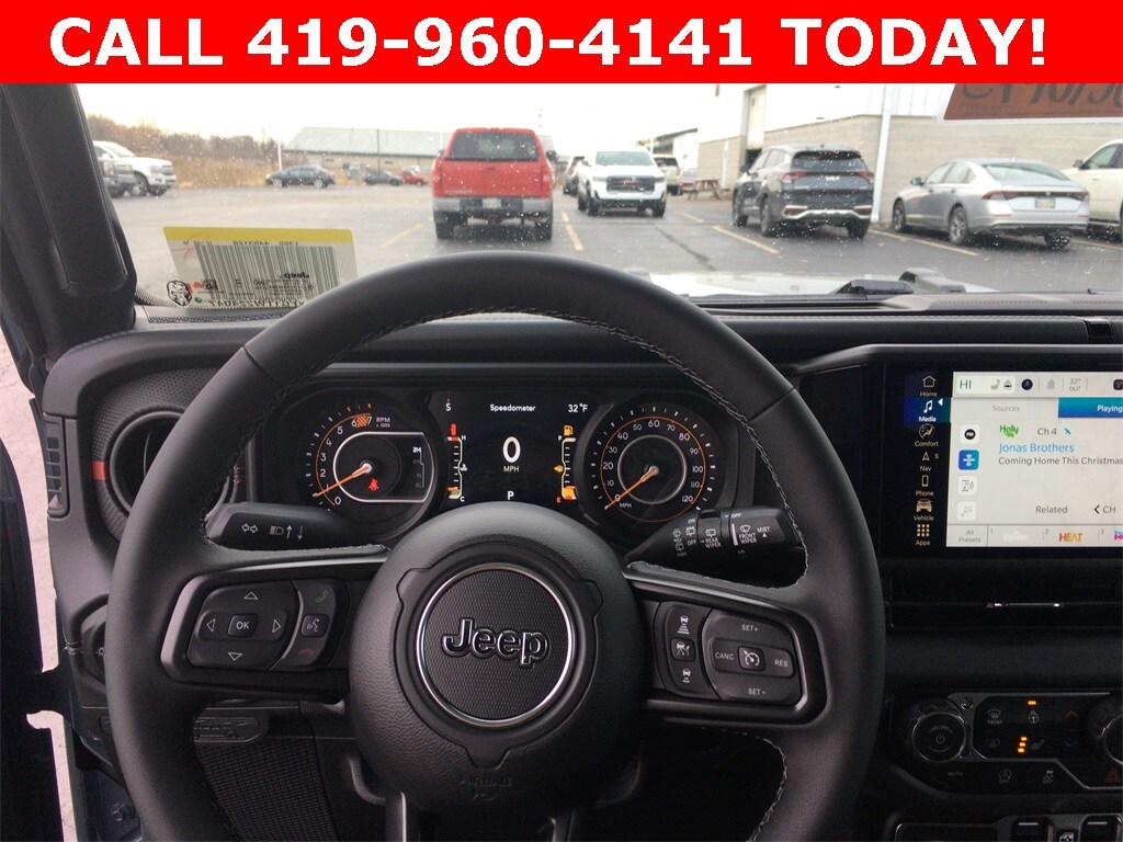 12.3" Touchscreen Display, 4-Wheel Disc Brakes, 4.10 Rear Axle Ratio, 4G LTE Wi-Fi Hot Spot, 8 Speakers, ABS brakes, Air Conditioning, Alloy wheels, Alpine Premium Audio System, AM/FM radio: SiriusXM with 360L, Apple CarPlay, Apple CarPlay/Android Auto, Auto-Dimming Rear-View Mirror, Automatic temperature control, Aux Battery, Auxiliary Switches, Body Color 3-Piece Hard Top, Body Color Rubicon Highline Flare, Brake assist, Class II Receiver Hitch, Cloth Low-Back Bucket Seats, Compass, Connected Travel and Traffic Services, Connectivity - US/Canada, Convenience Group, Delay-off headlights, Driver door bin, Driver vanity mirror, Dual front impact airbags, Dual front side impact airbags, Electronic Stability Control, Emergency communication system: Jeep Connect, For More Info, Call 800-643-2112, Freedom Panel Storage Bag, Front anti-roll bar, Front Bucket Seats, Front Center Armrest w/Storage, Front dual zone A/C, Front fog lights, Front License Plate Bracket, Front reading lights, Fully automatic headlights, Google Android Auto, GPS Navigation, HD Radio, Heated door mirrors, Heated Front Seats, Heated Steering Wheel, Illuminated entry, Integrated Center Stack Radio, Integrated Off-Road Camera, Integrated roll-over protection, Integrated Voice Command with Bluetooth, Low tire pressure warning, MOPAR All-Weather Floor Mats, No Soft Top, Non-Lock Fuel Cap Without Discriminator, Occupant sensing airbag, Outside temperature display, Overhead airbag, Panic alarm, ParkView Rear Back-Up Camera, Passenger door bin, Passenger vanity mirror, Performance Hood, Performance Suspension, Power door mirrors, Power steering, Power windows, Quick Order Package 24R Rubicon, Radio data system, Radio: Uconnect 5 Navigation with 12.3" Display, Radio: Uconnect 5 with 12.3" Display, Rear anti-roll bar, Rear reading lights, Rear Window Defroster, Rear Window Wiper/Washer, Remote keyless entry, Security system, SiriusXM Radio Service, SiriusXM with 360L, Speed control, Split folding rear seat, Steel Performance Hood Package, Steering wheel mounted audio controls, Stop-Start Dual Battery System, Tachometer, Technology Group, Telescoping steering wheel, Tilt steering wheel, Traction control, Trip computer, Universal Garage Door Opener, Variably intermittent wipers, Voltmeter, Wheels: 17" x 7.5" Machined/Painted Black.