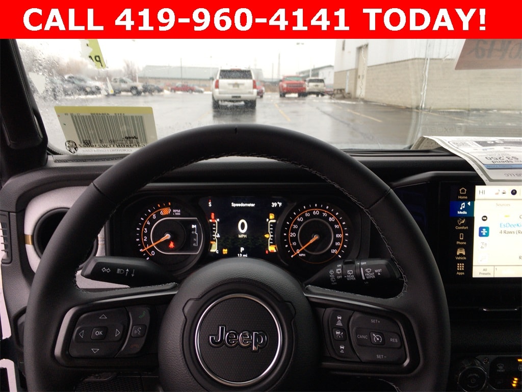 12.3" Touchscreen Display, 2-Door Passive Entry, Front Door Locks, 3.45 Overall Top Gear Ratio, 4-Wheel Disc Brakes, 4G LTE Wi-Fi Hot Spot, 8 Speakers, ABS brakes, Advanced Brake Assist, Air Conditioning, Air Conditioning with Auto Temp Control, Air Filtering, AM/FM radio: SiriusXM with 360L, Apple CarPlay, Apple CarPlay/Android Auto, Automatic Headlamps, Aux Battery, Black 3-Piece Hard Top, Brake assist, Cluster 7.0" TFT Color Display, Compass, Connectivity - US/Canada, Convenience Group, Corning Gorilla Glass, Deep Tint Sunscreen Windows, Delay-off headlights, Driver door bin, Driver vanity mirror, Dual front impact airbags, Dual front side impact airbags, Electronic Stability Control, Emergency/Assistance Call, Enhanced Adaptive Cruise Control, For More Info, Call 800-643-2112, Freedom Panel Storage Bag, Front anti-roll bar, Front Bucket Seats, Front Center Armrest w/Storage, Front fog lights, Front LED Fog Lamps, Front reading lights, Full Speed Forward Collision Warning Plus, Google Android Auto, Heated Front Seats, Heated Steering Wheel, Illuminated entry, Integrated Center Stack Radio, Integrated roll-over protection, LED Headlamp and Fog Lamp Group, LED Premium Reflector Headlamps, Low tire pressure warning, MOPAR All-Weather Floor Mats, Mopar Black Fuel Filler Door, No Soft Top, Non-Lock Fuel Cap Without Discriminator, Normal Duty Suspension, Occupant sensing airbag, Outside temperature display, Overhead airbag, Panic alarm, ParkView Rear Back-Up Camera, Passenger door bin, Passenger vanity mirror, Power Heated Mirrors, Power steering, Power windows, Premium Wrapped Steering Wheel, Quick Order Package 22S Sport S, Radio data system, Radio: Uconnect 5 with 12.3" Display, Rear anti-roll bar, Rear reading lights, Rear Window Defroster, Rear Window Wiper/Washer, Remote keyless entry, Security Alarm, SiriusXM Radio Service, SiriusXM with 360L, Speed control, Split folding rear seat, Steering wheel mounted audio controls, Stop-Start Dual Battery System, Sun Visors with Illuminated Vanity Mirrors, Tachometer, Telescoping steering wheel, Tilt steering wheel, Traction control, Trip computer, Universal Garage Door Opener, Variably intermittent wipers, Wheels: 17" x 7.5" Black Steel Styled, Wheels: 17" x 7.5" Gray.
