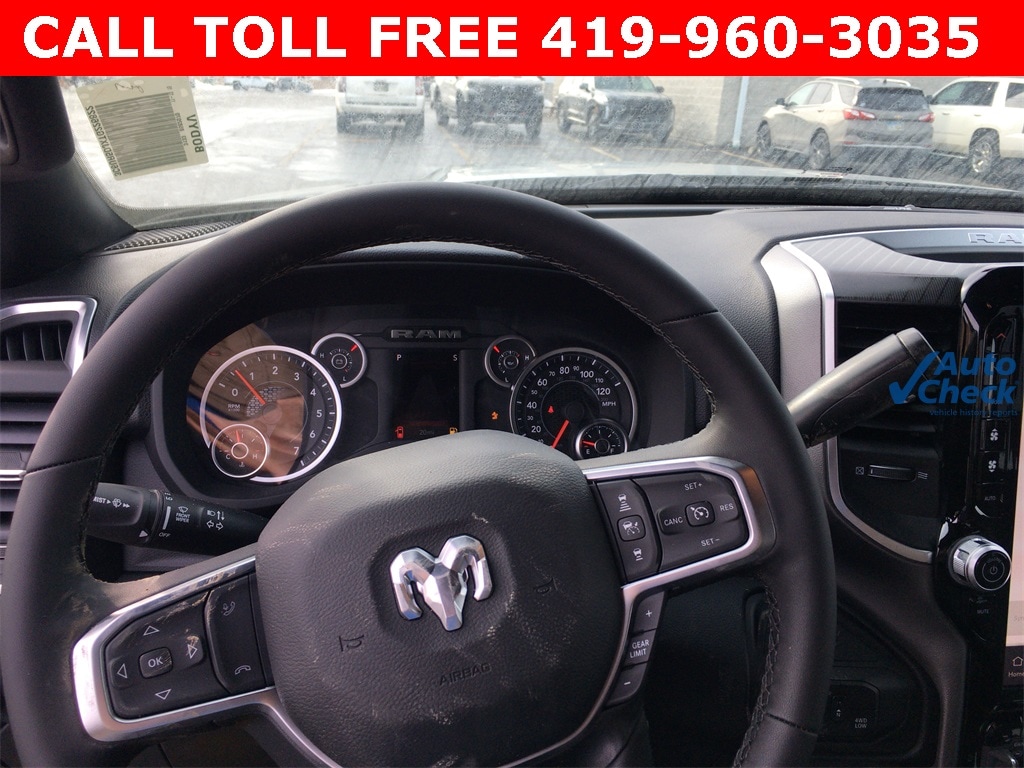 12" Touchscreen Display, 2 Way Rear Headrest Seat, 2nd Row in Floor Storage Bins, 3.73 Axle Ratio, 4 Way Front Headrests, 4-Wheel Disc Brakes, 40/20/40 Split Bench Seat, 4G LTE Wi-Fi Hot Spot, 6 Speakers, 9 Alpine Speakers with Subwoofer, ABS brakes, Air Conditioning, Air Conditioning ATC with Dual Zone Control, Alexa Built-in, Alloy wheels, AM/FM radio: SiriusXM, Anti-Spin Differential Rear Axle, Apple CarPlay, Apple CarPlay/Android Auto, Auto Power-Folding Mirrors, Auto-Dimming Rear-View Mirror, Big Horn Level 1 Plus Equipment Group, Black Exterior Mirrors, Black Exterior Truck Badging, Black Interior Accents, Black Wheel Center Hub, Body Color Grille-Surround, Brake assist, Bumpers: chrome, Center Hub, Clearance Lamps, Cloth 40/20/40 Bench Seat, Compass, Connected Travel and Traffic Services, Connectivity - US/Canada, Delay-off headlights, Disassociated Touchscreen Display, Driver door bin, Dual front impact airbags, Dual front side impact airbags, Dual Glove Boxes, Electronic Stability Control, Emergency Vehicle Alert System (EVAS), Exterior Mirrors Courtesy Lamps, Exterior Mirrors with Heating Element, Exterior Mirrors with Supplemental Signals, Foam Bottle Insert (door Trim Panel), Folding Flat Load Floor Storage, Footwell Courtesy Lamp, For Details, Visit DriveUconnect.com, For More Info, Call 800-643-2112, Forward and Reverse Utility Lights, Front anti-roll bar, Front Armrest with Cupholders, Front Center Armrest w/Storage, Front Center Seat Cushion Storage, Front fog lights, Front License Plate Bracket, Front reading lights, Front Seat Back Map Pockets, Fully automatic headlights, Global Telematics Box Module, Gloss Black Nostrils/Mic Black Grille, Glove Box Lamp, Google Android Auto, GPS Antenna Input, GPS Navigation, HD Radio, Heated door mirrors, Heated Front Seats, Heated Seats and Wheel Group, Heated Steering Wheel, Illuminated entry, Integrated Voice Command with Bluetooth, LED Bed Lighting, Locking Lower Glove Box, Low tire pressure warning, Luxury Steering Wheel, Manual Adjust 4-Way Driver Seat, Manual Adjust 4-Way Front Passenger Seat, Mirror Running Lights, MOPAR Deployable Bed Step, MOPAR Front and Rear Rubber Floor Mats, MOPAR Spray in Bedliner, Night Edition, Occupant sensing airbag, Off-Road Info Pages, Outside temperature display, Overhead airbag, Overhead console, Painted Flat Wheel-to-Wheel Side Steps, Painted Front Bumper, Painted Rear Bumper, Panic alarm, ParkView Rear Back-Up Camera, Passenger door bin, Passenger vanity mirror, Power 2-Way Driver Lumbar Adjust, Power Adjust 8-Way Driver Seat, Power Adjust Mirrors, Power door mirrors, Power Heated Folding Telescopic Mirrors, Power steering, Power Telescoping Mirrors, Power windows, Power-Adjustable Convex Aux Mirrors, Premium Cloth 40/20/40 Bench Seat, Quick Order Package 2UZ Big Horn, Radio data system, Radio: Uconnect 5 Navigation with 12.0" Display, Radio: Uconnect 5 with 8.4" Display, Rear 60/40 Folding Seat, Rear anti-roll bar, Rear Dome with on/Off Switch Lamp, Rear Folding Seat, Rear seat center armrest, Rear step bumper, Rear window defroster, Remote keyless entry, Remote Start System, Remote USB Port - Charge Only, Security system, Selectable Tire Fill Alert, SiriusXM Radio Service, SiriusXM with 360L, Speed control, Steering Wheel Mounted Audio Controls, Storage Tray, Tachometer, Tilt steering wheel, Traction control, Trailer Tow Pages, Trip computer, Turn signal indicator mirrors, Variably intermittent wipers, Voltmeter, Wheels: 18" x 8.0" Polished Aluminum, Wheels: 20" x 8.0" Black Painted Aluminum.