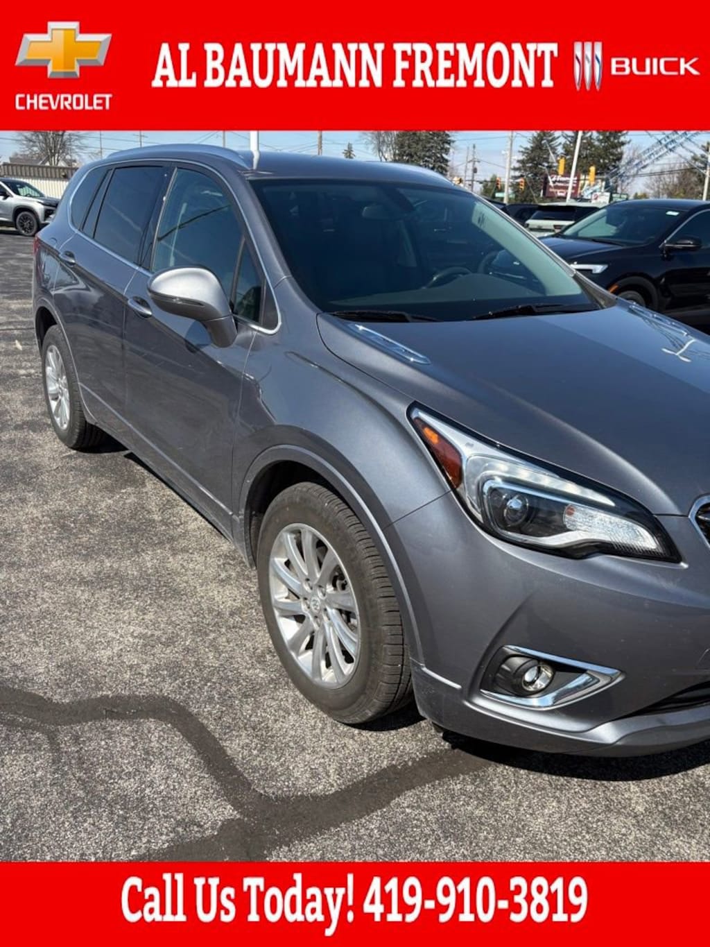 Recent Arrival! Odometer is 13715 miles below market average! CARFAX One-Owner. Clean CARFAX.Satin Steel Metallic 2020 Buick Envision Essence AWD ESSENCE 4D Sport Utility 2.5L 4-Cylinder DGI DOHC VVT 6-Speed Automatic AWDONE OWNER CLEAN CARFAX!!Car shopping is sometimes inconvenient and stressful, and we want to take the hassle out of this all-too-common experience. If youâre interested in more convenience, less frustration and a process that works efficiently to meet your needs as a customer. Al BAUMANN AUTO GROUP. The Best Price Up Front Cash Offers For Any Trade-In Multiple Financing Quotes In Minutes A Team Of Dedicated Salespeople.CALL,419-332-8236 or {1-866-330-3601}, Preferred Equipment Group 1SL, 18 10-Spoke Polished Aluminum Wheels, 3.50 Final Drive Axle Ratio, 4-Wheel Disc Brakes, 6 Speakers, 6-Speaker Audio System Feature, ABS brakes, Air Conditioning, Alloy wheels, AM/FM radio: SiriusXM, Apple CarPlay/Android Auto, Auto-dimming door mirrors, Auto-dimming Rear-View mirror, Automatic temperature control, Brake assist, Bumpers: body-color, Compass, Delay-off headlights, Driver 8-Way Power Seat Adjuster, Driver door bin, Driver vanity mirror, Dual front impact airbags, Dual front side impact airbags, Dual USB Charging-Only Ports, Dual USB Ports w/Single Auxiliary Input Jack, Electronic Stability Control, Emergency communication system: OnStar and Buick connected services capable, Exterior Parking Camera Rear, Four wheel independent suspension, Front anti-roll bar, Front Bucket Seats, Front Center Armrest, Front dual zone A/C, Front fog lights, Front Passenger 8-Way Power Seat Adjuster, Front reading lights, Fully automatic headlights, Garage door transmitter, Heated door mirrors, Heated Driver & Front Passenger Seats, Heated front seats, Heated rear seats, Heated steering wheel, High-Intensity Discharge Headlights, Illuminated entry, Knee airbag, Leather Shift Knob, Low tire pressure warning, Memory seat, Memory Settings, Occupant sensing airbag, Outside temperature display, Overhead airbag, Overhead console, Panic alarm, Passenger door bin, Passenger vanity mirror, Perforated Leather-Appointed Seat Trim, Power door mirrors, Power driver seat, Power Liftgate, Power passenger seat, Power steering, Power windows, Radio data system, Radio: Buick Infotainment System AM/FM Stereo, Rear air conditioning, Rear anti-roll bar, Rear reading lights, Rear seat center armrest, Rear side impact airbag, Rear window defroster, Rear window wiper, Remote keyless entry, Roof rack: rails only, Security system, SiriusXM Radio, Speed control, Speed-sensing steering, Split folding rear seat, Spoiler, Steering wheel mounted audio controls, Tachometer, Telescoping steering wheel, Tilt steering wheel, Traction control, Trip computer, Turn signal indicator mirrors, Variably intermittent wipers, Preferred Equipment Group 1SL.