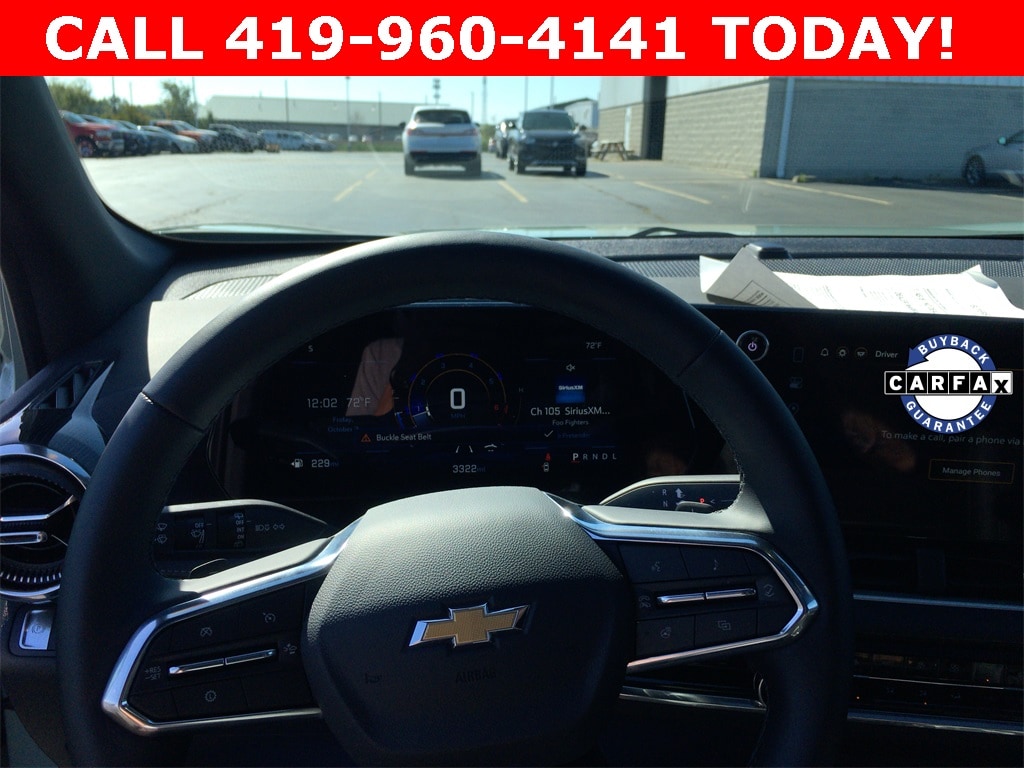 CALL 419- 732 -3148 or 419- 960- 4141, 2-Way Power Driver Lumbar Control Seat Adjuster, 4-Wheel Disc Brakes, 5.81 Final Drive Axle Ratio, 6 Speakers, ABS brakes, Air Conditioning, All-Weather Floor Liners (LPO), Alloy wheels, AM/FM radio: SiriusXM, Auto High-beam Headlights, AutoSense Hands-Free Power Programmable Liftgate, Brake assist, Bumpers: body-color, Cabin Humidity & Windshield Sensor, Cargo Mat, Cloth Seat Trim, Compass, Convenience Package II, Delay-off headlights, Driver 6-Way Manual Seat Adjuster, Driver 8-Way Power Seat Adjuster, Driver door bin, Driver vanity mirror, Dual front impact airbags, Dual front side impact airbags, Dual-Zone Automatic Climate Control, Electronic Stability Control, Emergency communication system: OnStar and Chevrolet connected services capable, Evotex Seat Trim, Floor Liner Package (LPO), Four wheel independent suspension, Front anti-roll bar, Front Bucket Seats, Front Center Armrest, Front Passenger 4-Way Manual Seat Adjuster, Front reading lights, Fully automatic headlights, Heated door mirrors, Heated Driver & Front Passenger Seats, Heated front seats, Heated steering wheel, Heated Wiper Park, Illuminated entry, Intermittent Front Rain-Sensing Wipers, Low tire pressure warning, Mosaic Black Metallic Roof, Mosaic Black Mirror Caps, Navigation System, Occupant sensing airbag, Outside temperature display, Overhead airbag, Overhead console, Overhead Sunglass Storage, Panic alarm, Passenger door bin, Passenger vanity mirror, Power door mirrors, Power Dual Glass Panoramic Sliding Sunroof, Power steering, Power windows, Preferred Equipment Group 1LT, Premium audio system: Chevrolet Infotainment 3, Programmable Universal Home Remote, Radio data system, Radio: 11.3" Diagonal Advanced Color LCD Display, Rear anti-roll bar, Rear reading lights, Rear seat center armrest, Rear window defroster, Rear window wiper, Remote keyless entry, Roof Rails, Second Row All-Weather Mat (LPO), Security system, SiriusXM w/360L Trial Subscription, Speed control, Speed-sensing steering, Split folding rear seat, Spoiler, Steering wheel mounted audio controls, Tachometer, Telescoping steering wheel, Tilt steering wheel, Traction control, Trip computer, Variably intermittent wipers, Wheels: 17" Grazen Metallic Machined-Face Aluminum, Wireless Phone Charging for Portable Devices.