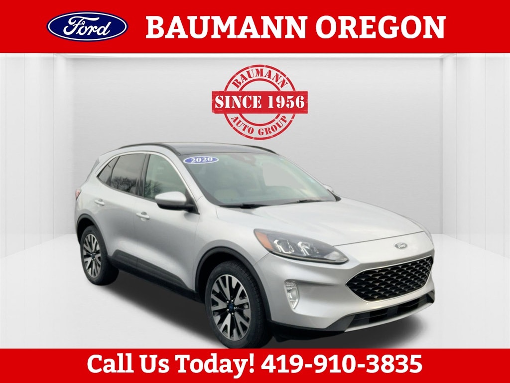 Odometer is 12169 miles below market average! Ingot Silver Metallic 2020 Ford Escape SEL EcoBoost 2.0L I4 GTDi DOHC Turbocharged VCT 4D Sport Utility 8-Speed Automatic AWD We are open and ready to serve you! Shop safely and conveniently from the comfort of your home. Contact us today to schedule your home delivery ! Baumann Ford Oregon Toledo Ohio Perrysburg Bowling Green Rossford Curtice Oak Harbor Woodville Monroe Michigan Temperance Erie Repair Facility Body Shop Collision Center Parts Service New Used Leasing Low Payment Low Payments Ford Motorcars Automobile Auto Cars Trucks SUV Sales. AUTO CHECK NO ACCIDENTS, BLUETOOTH/HANDS FREE CELL PHONE, REAR BACK UP CAMERA, NON-SMOKER, FULLY DETAILED, FRESH OIL CHANGE, AWD, Adaptive Cruise Control w/Stop-and-Go, Black Roof-Rack Side Rails, Equipment Group 301A, Ford Co-Pilot360 Assist, Panoramic Vista Roof, Voice-Activated Touchscreen Navigation System, 18 Machined-Face Aluminum Wheels, 3.81 axle ratio, 4-Wheel Disc Brakes, 6 Speakers, ABS brakes, Air Conditioning, Alloy wheels, AM/FM radio: SiriusXM, AM/FM Stereo, Auto High-beam Headlights, Automatic temperature control, Brake assist, Bumpers: body-color, Compass, Delay-off headlights, Driver door bin, Driver vanity mirror, Dual front impact airbags, Dual front side impact airbags, Electronic Stability Control, Emergency communication system: SYNC 3 911 Assist, Exterior Parking Camera Rear, FordPass Connect, Four wheel independent suspension, Front & Rear Floor Liners, Front anti-roll bar, Front Bucket Seats, Front Center Armrest, Front fog lights, Front reading lights, Fully automatic headlights, Heated ActiveX Front Sport Contour Bucket Seats, Heated door mirrors, Heated front seats, Heated steering wheel, Illuminated entry, Knee airbag, Leather steering wheel, Low tire pressure warning, Memory seat, Occupant sensing airbag, Outside temperature display, Overhead airbag, Overhead console, Panic alarm, Passenger door bin, Passenger vanity mirror, Power door mirrors, Power driver seat, Power Liftgate, Power steering, Power windows, Radio data system, Rear anti-roll bar, Rear reading lights, Rear seat center armrest, Rear window defroster, Rear window wiper, Remote keyless entry, Speed control, Speed-sensing steering, Speed-Sensitive Wipers, Split folding rear seat, Spoiler, Steering wheel mounted audio controls, SYNC 3 Communications & Entertainment System, Tachometer, Telescoping steering wheel, Tilt steering wheel, Traction control, Trip computer, Variably intermittent wipers, Wheels: 19 Machined Aluminum